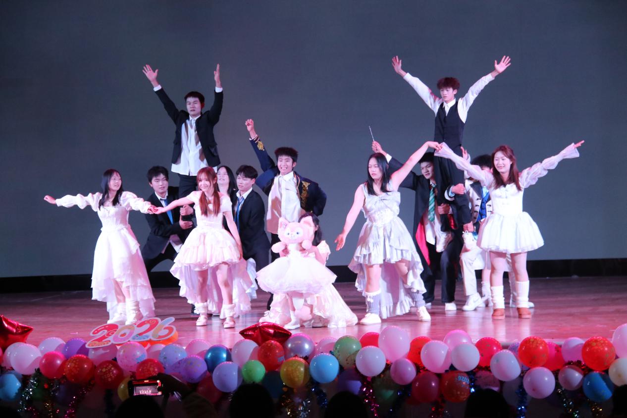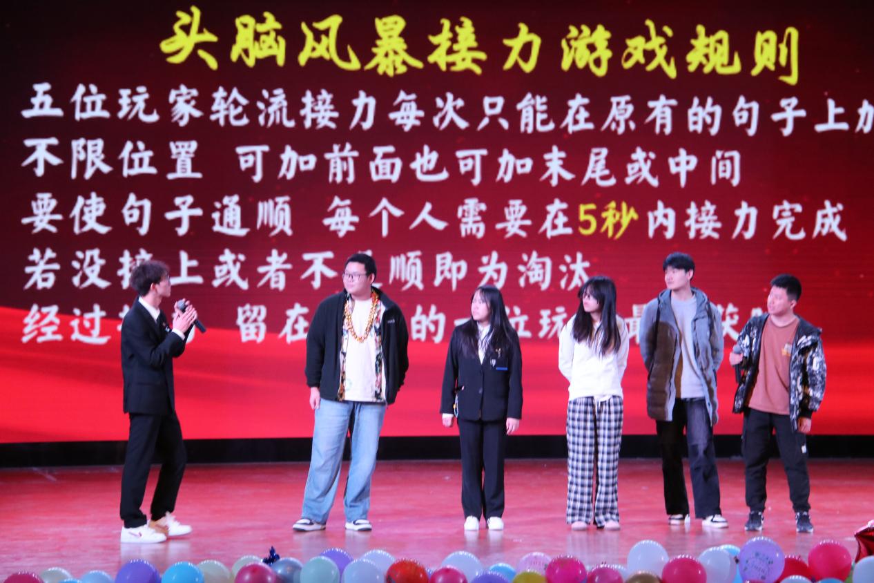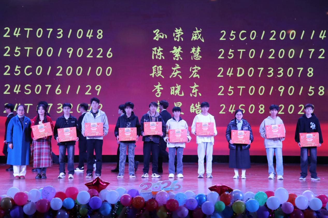 晚会现场还设置了幸运抽奖、趣味游戏环节,惊喜连连的互动让现场欢呼声不断。24级学长学姐的倾情助阵,更是充分发挥了“传帮带”作用,让学院的青春力量得以延续。晚会在悠扬旋律与师生集体合影的温馨画面中圆满落下帷幕。