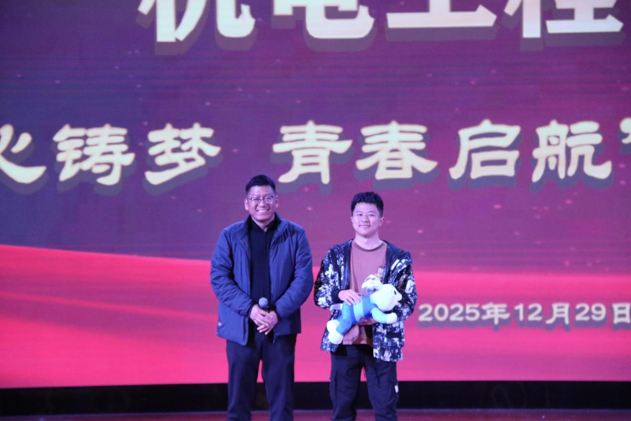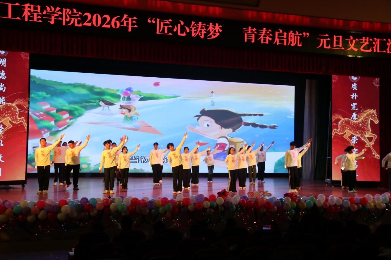 辞旧迎新启新程,青春聚力谱华章。12月26日18:00,世界杯体育官方网站2026年“匠心铸梦,青春启航”元旦文艺汇演在明礼堂隆重开演。本次晚会有幸邀请到了学校党委委员、马克思主义学院院长张延星,学生处处长李广涛,校团委副书记熊欢,校团委组织部部长庞梦飞,校团委宣传部部长王姚尧,组织部干部科科长马玲,世界杯体育官方网站党委领导班子成员应邀出席,兄弟学院团总支书记及教师组成专业评委团,学院25级辅导员班主任老师、学院专业课老师与25级全体同学欢聚一堂,共赏这场洋溢着青春气息的文艺盛宴。