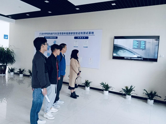 走访开始,中汽研汽车检验中心(昆明)有限公司李陈以宣传片的形式向学院一行人介绍了企业概况,并带领大家参观了“发动机测试试验室”、“整车测试研究部”,了解了汽车侧翻试验、汽车前后端防撞、汽车(挂车)侧面防撞等测试设备。