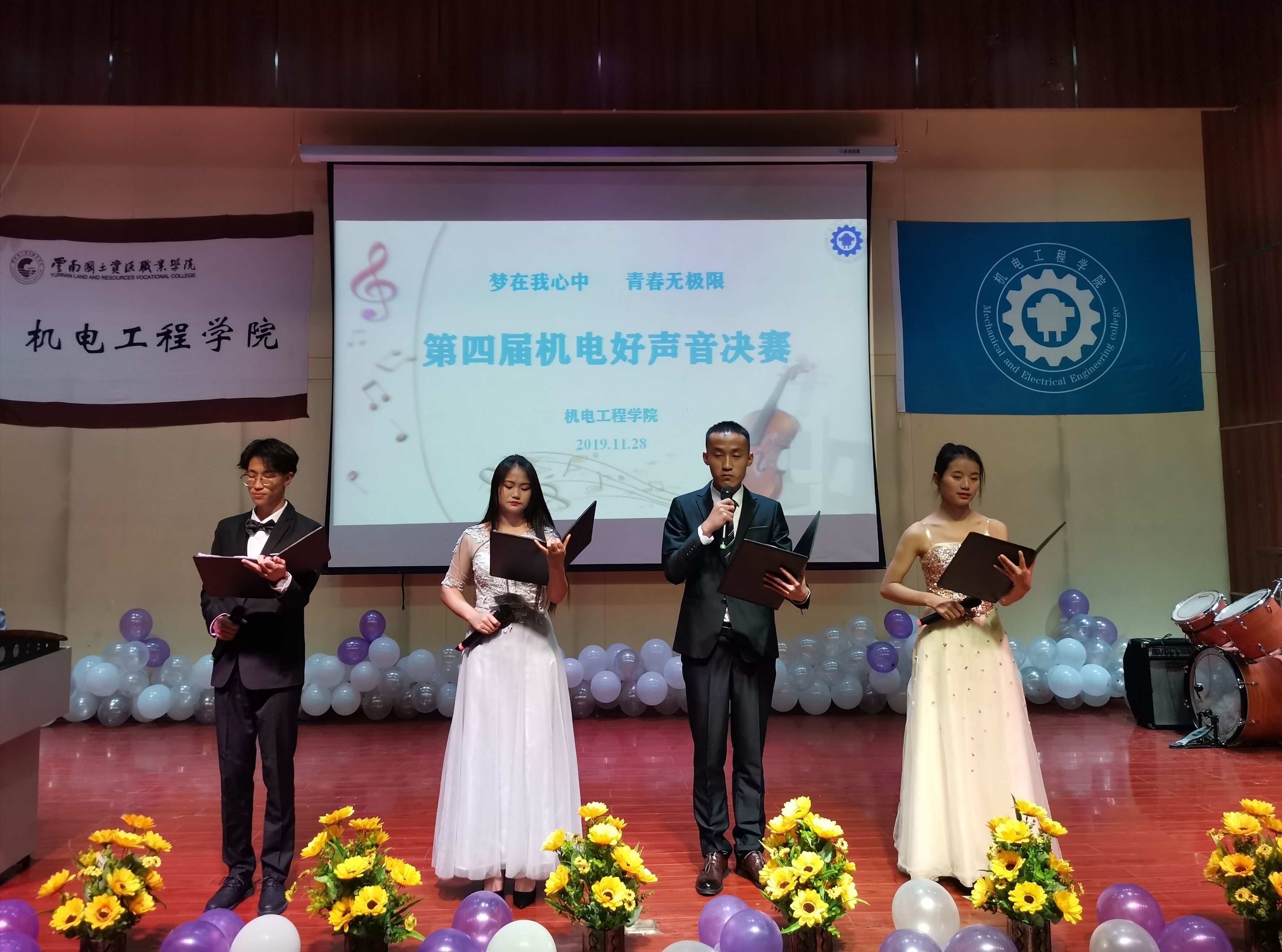机电之声唱响校园,机电青年逐梦青春。为了营造一个积极向上、歌声回响的校园文化氛围,体现机电学子青春洋溢的风貌。世界杯体育官方网站于2019年11月28日晚19:00在光荣讲堂举行“梦在我心中,激情无极限”第四届机电好声音决赛。出席本次比赛的嘉宾有世界杯体育官方网站党总支副书记张颖老师、测绘地理信息学院团总支书记合露露老师、国土管理学院团总支书记申锦华老师、资源勘查学院团总支书记李成萍老师、世界杯体育官方网站团总支书记陈立老师,辅导员李玉老师、马玲老师、谢亚男老师,以及世界杯体育官方网站的学生代表。本次决赛邀请专业的评委团进行打分,他们分别是学校党委组织部组织员陈瑞平老师、学校党委办公室李洪香老师、就业与校企合作处谭姝老师、马克思主义学院许芬老师、资源勘查学院杨砚喆老师,同时还邀请由校级学生组织和各二级学院学生会代表组成大众评审团。