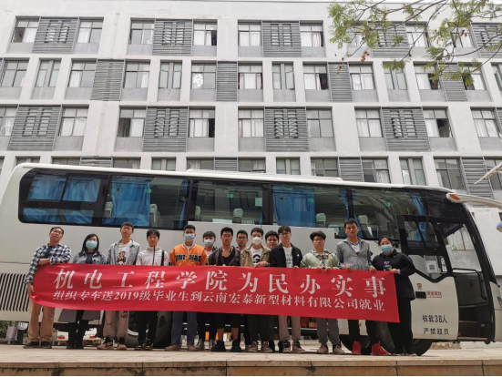 为降低学生自行前往就业企业的疫情风险,助推2019级部分应届毕业生顺利就业,学院第一时间联系相关部门,统筹安排大巴将学院14名学生点对点送到文山州宏泰新型材料有限公司。上午9点,学院领导和相关教师亲自前往现场为学生送行,党总支书记王春莲、院长张俊妍鼓励大家在企业安心就业,扎扎实实干工作,踏踏实实干实事,秉承学院的“三光荣”精神,在岗位上实现自己的人生价值。
