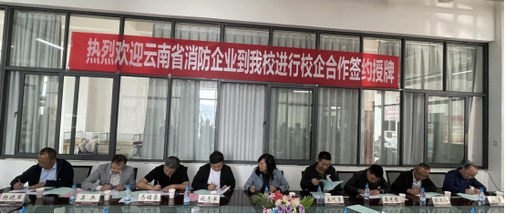 5月7日上午,学校与昆明益金安消防技术咨询有限公司、云南云鹰消防设施维护管理有限公司、云南港鼎工程技术有限公司等8家公司在明尚楼A201会议室签订校企合作协议暨举行授牌仪式。本次签约授牌仪式由世界杯体育官方网站安全技术与管理教研室主任冯溪阳主持,8家消防企业总经理、副总经理,学校党委书记牛定柱、校长陈颖、就业与合作处陆祥、世界杯体育官方网站院长张俊妍、党总支书记王春莲、党总支副书记陈伟以及学院相关专业教师共同参加。