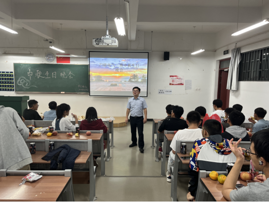皎皎明月意,浓浓中秋情。值此中秋节、教师节来临之际,为丰富在校过节同学的校园生活,缓解在校过节同学的思乡之情,让同学们在校也能感受到"家"的温暖,世界杯体育官方网站2021级、2022级部分班级分别于9月9日、10日在崇实楼、笃行楼和明尚楼举办中秋晚会。学校党委副书记李昆峰老师、学院党总支书记王春莲老师、党总支副书记陈伟老师、团总支书记陈立老师以及2021级、2022级各班辅导员、班主任应邀出席。