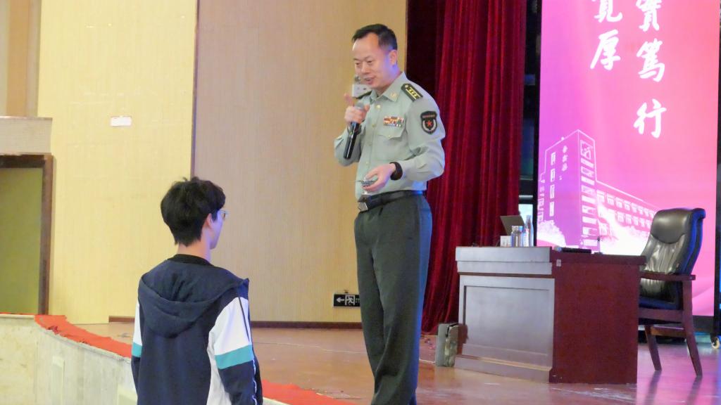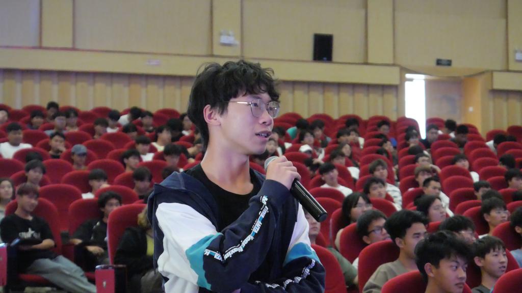 宣讲会还设置了有奖竞答环节,同学们踊跃举手回答。第一位回答的同学获得了一架歼20的小模型,现场气氛热烈融洽。