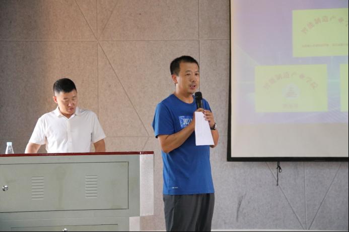 樊鹏奋副主任向同学们介绍了《智能制造在秀洲》,他提到嘉兴秀州的人文风景、地理位置、城市特色等,还介绍了订单班所享受的福利,展示了第一届订单班学生的履历。