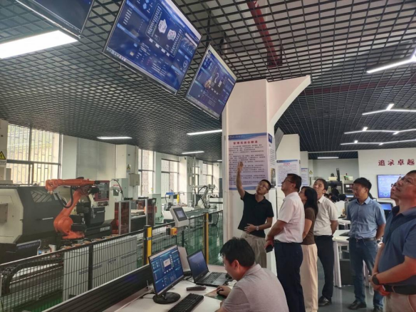 活动伊始,世界杯体育官方网站张俊妍院长亲自带领叶晓刚书记一行参观了现代化智能制造数字孪生与虚拟仿真综合实训基地。在参观过程中,先进的实训设备和智能化的教学环境给大家留下了深刻的印象。