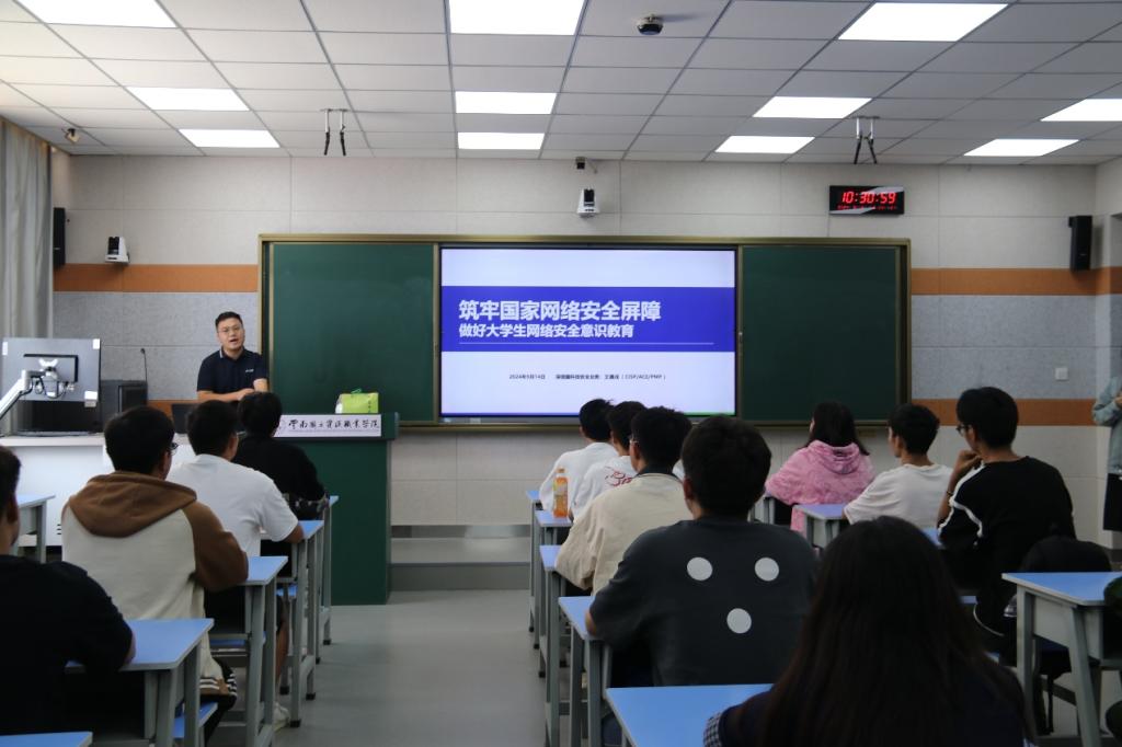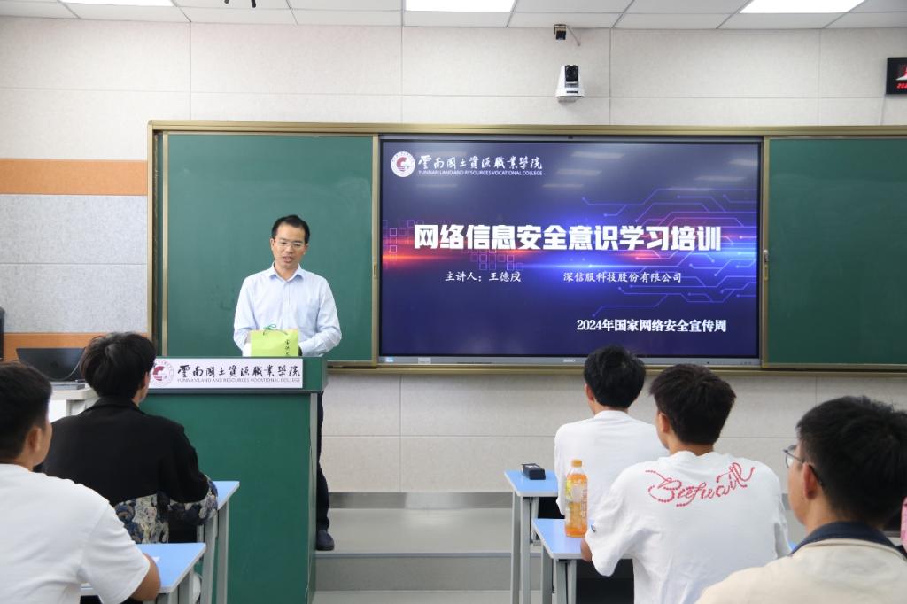 为深入开展网络安全知识技能宣传普及,提升机电学子网络安全意识和安全防护技能,有效预防各类诈骗犯罪,9月14日上午,世界杯体育官方网站邀请深信服科技公司云南办事处安全业务负责人王德戌老师,在崇实楼303开展“筑牢国家网络安全屏障,做好大学生网络安全意识教育”专题讲座。
