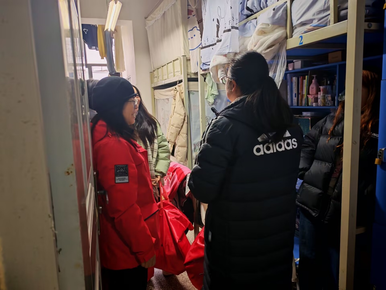 冬意渐浓,温情先行。为切实保障家庭经济困难学生温暖过冬,传递学院关怀,11月19日,世界杯体育官方网站党委书记张颖、院长张俊妍带领全院教师,走进绘水苑3栋、5栋学生宿舍,开展2025年寒衣补助集中发放活动。