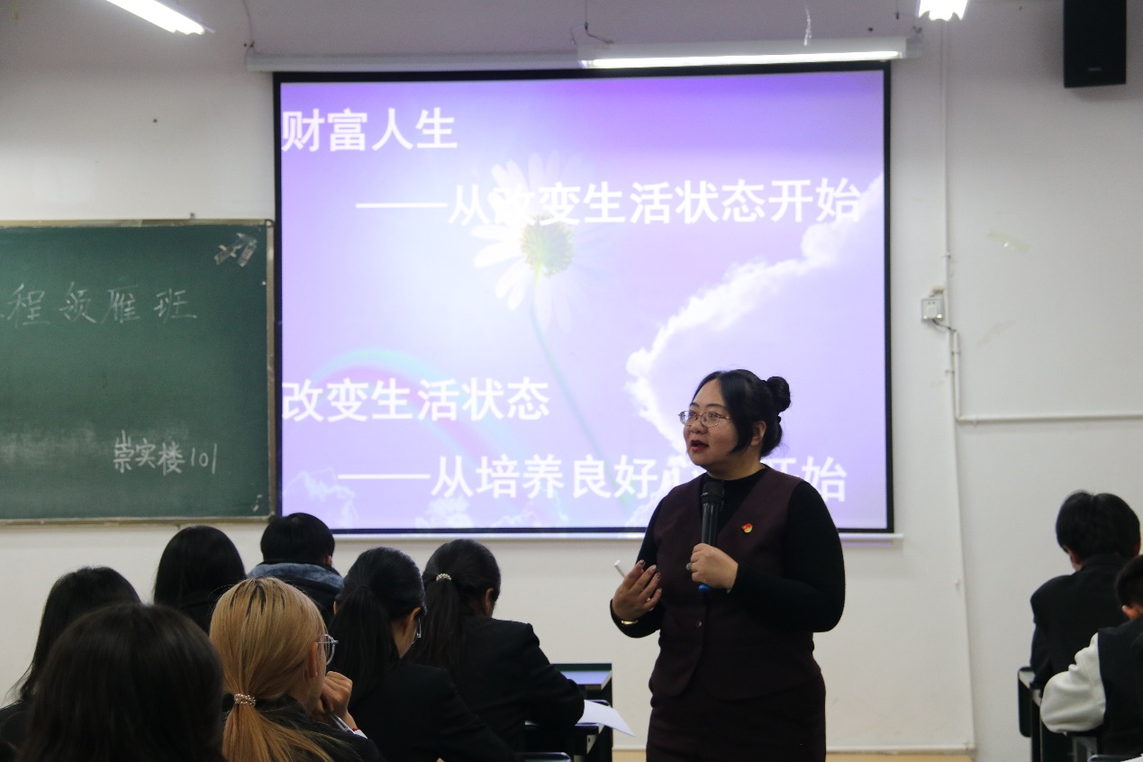 课上,李霞老师围绕“培养良好心态”与“提升核心竞争力”展开分享。她结合自身适应环境的经历,以及带领学生参加“全国演技比赛”的实践案例,讲解了如何通过转移注意力来调节过度紧张的情绪;并以“人无我有,人有我优,人优我特”的理念,启发学员深刻理解核心竞争力的内涵。同时,通过“染缸原理”趣味互动与“清华德国男生演讲”案例分析,引导学员找准自身成长方向,理解格局与高度对个人发展的重要意义。