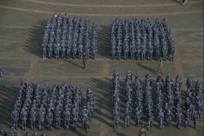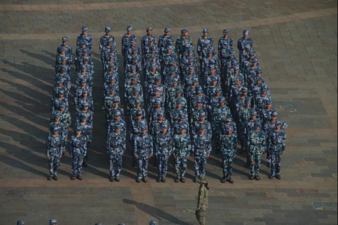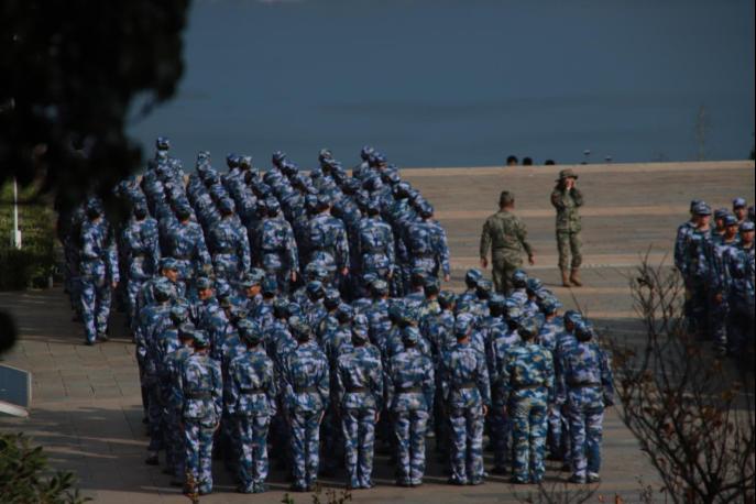 有一种站姿,是紧贴裤缝,昂首挺胸 。有一份坚毅,是阔步向前,百折不挠。经过一周的辛苦训练,新生们眼神中个个散发着坚韧,人人脸上满是不言弃的精气神。