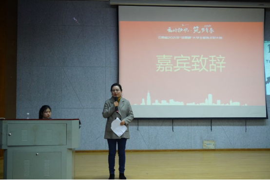 比赛伊始,由钱敏老师为本次大赛致辞,她表示希望各位参赛选手牢牢抓住此次锻炼机会,通过模拟查找不足,相互学习,尽可能展现个人魅力,树立良好的就业观念,并不断提升就业力。