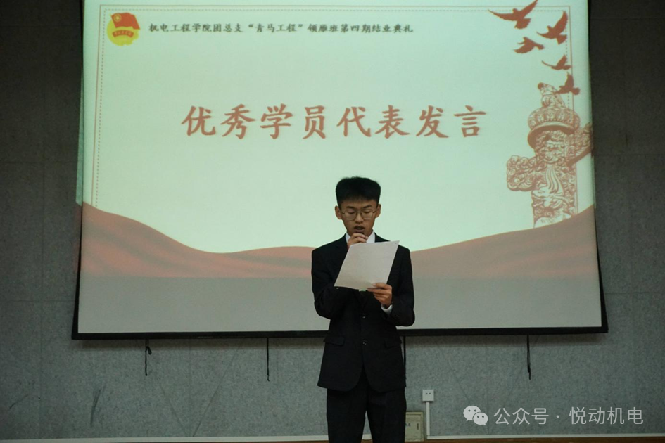 优秀学员李天鹤代表全体青马班成员发言。他表示,在集体中相互学习成长,结业是新起点,将会把培训成果转化为行动,牢记使命融入党和国家事业发展,最后以习近平总书记对青年的寄语与大家共勉。