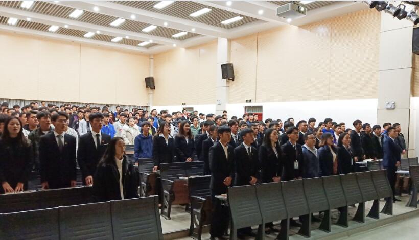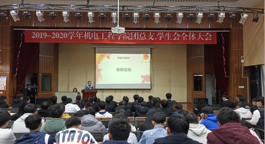 2019年12月24日19时,世界杯体育官方网站团总支、学生会在光荣讲堂召开总结大会。参加此次大会的有团总支书记陈立老师、辅导员李玉老师、18级全体团学干部和19级全体干事。