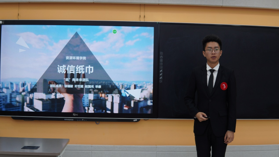 竞赛开始,各赛场参赛队伍代表依次按照抽签顺序上台,通过讲解PPT、播放演示视频、展示实物模型等方式,对各自项目背景、项目内容、项目落地、发展前景等方面进行讲解。现场评委老师分别从社会价值、项目创新点、发展前景、可行性等方面对展示项目进行提问。各赛场气氛热烈,评委提问环节扣人心弦,参赛选手们沉着冷静,从容不迫,用精彩的回答赢得场下观众阵阵掌声。