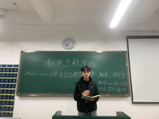 首先,团总支副书记张立山对本月“学习党的二十大精神”团日活动进行安排部署,他希望各班团支书要主动负责,要自觉履行工作职责,做好团日活动策划,创新活动方式。组织部、宣传部负责人分别对上一期团日活动和青年大学习进行通报、总结。