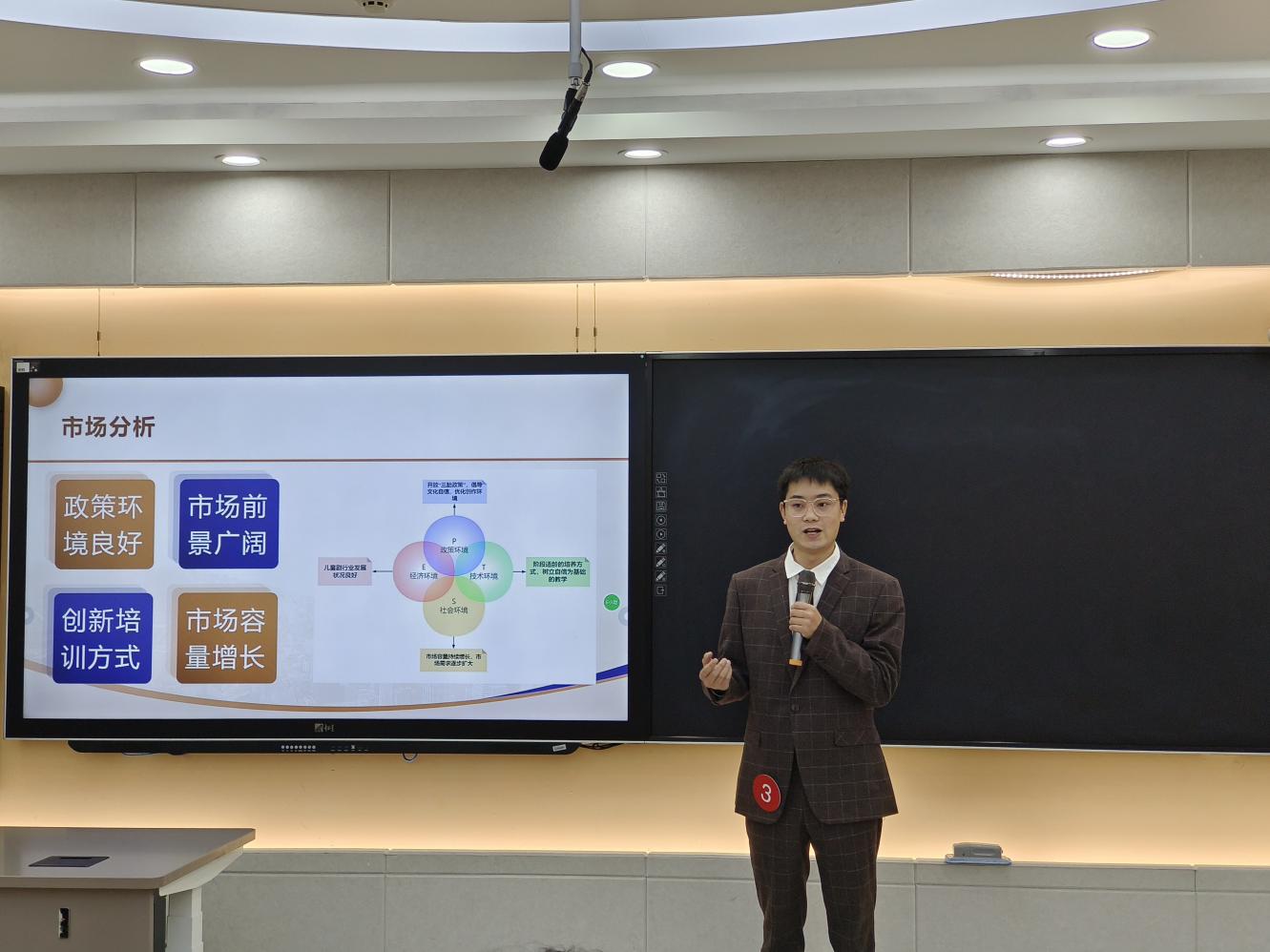 比赛设置项目路演、现场答辩两个环节。项目路演环节,各项目负责人根据抽签顺序依次上台,通过PPT、视频、实物展示等方式从项目背景、商业模式、运营模式和未来规划等方面进行展示。