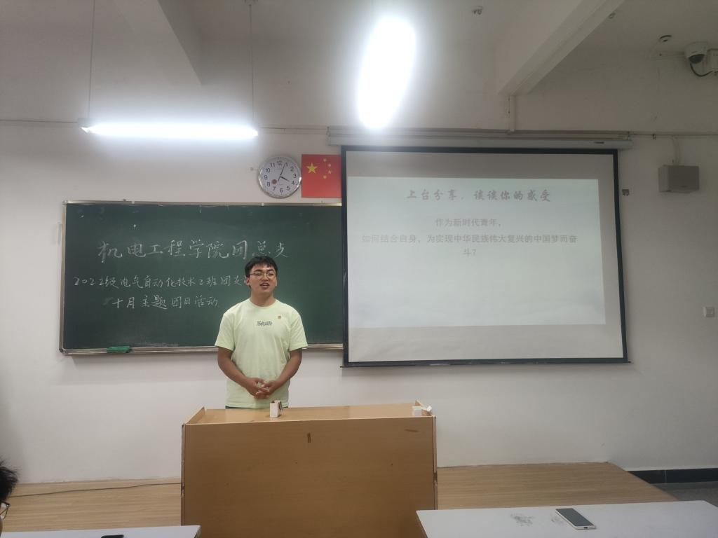 本次团日活动中,部分支部在原有的ppt讲解、视频学习基础上,不断创新活动开展形式,加深支部成员对党的创新理论的理解,增进支部成员对理论知识的政治认同、思想认同、理论认同、情感认同。其中,2022级电气自动化技术1班在班级团支部副书记的带领下,自拟主题,开展了小组讨论。小组讨论现场气氛热烈,支部成员主动思考、积极交流。2022级电气自动化技术2班则是在开展“思想旗帜”这个主题时,采取了支部同学轮流上台授课的方式讲解理论知识,让参与授课的同学在感受授课乐趣的同时,加深了对本次团日活动的理解。
