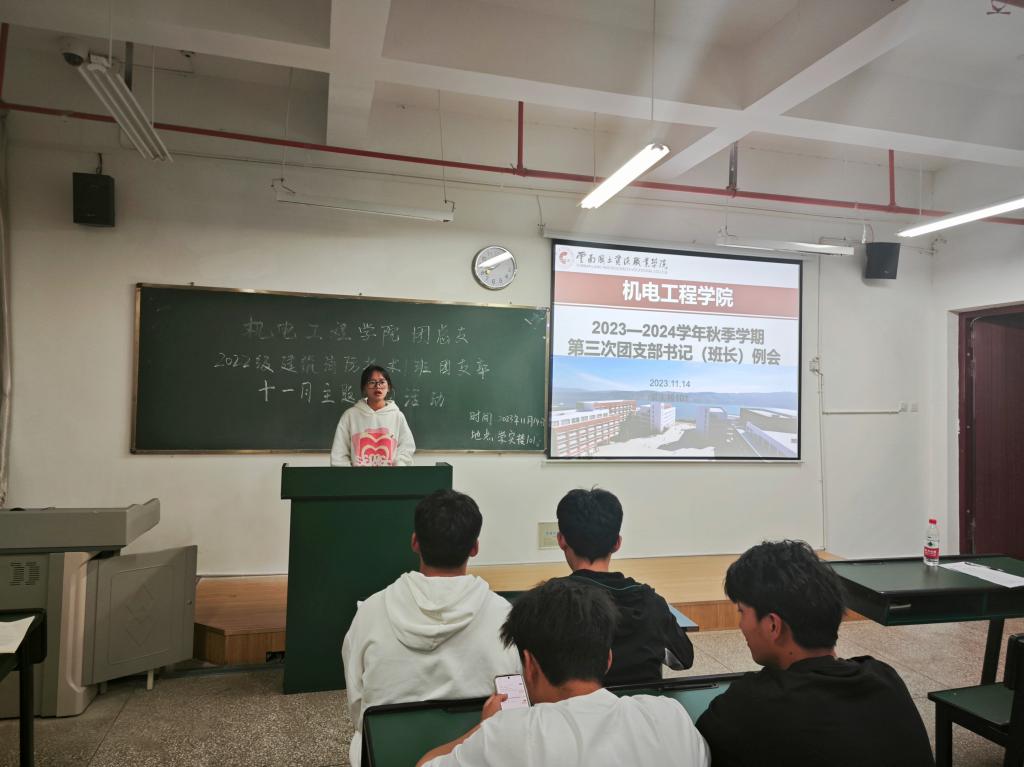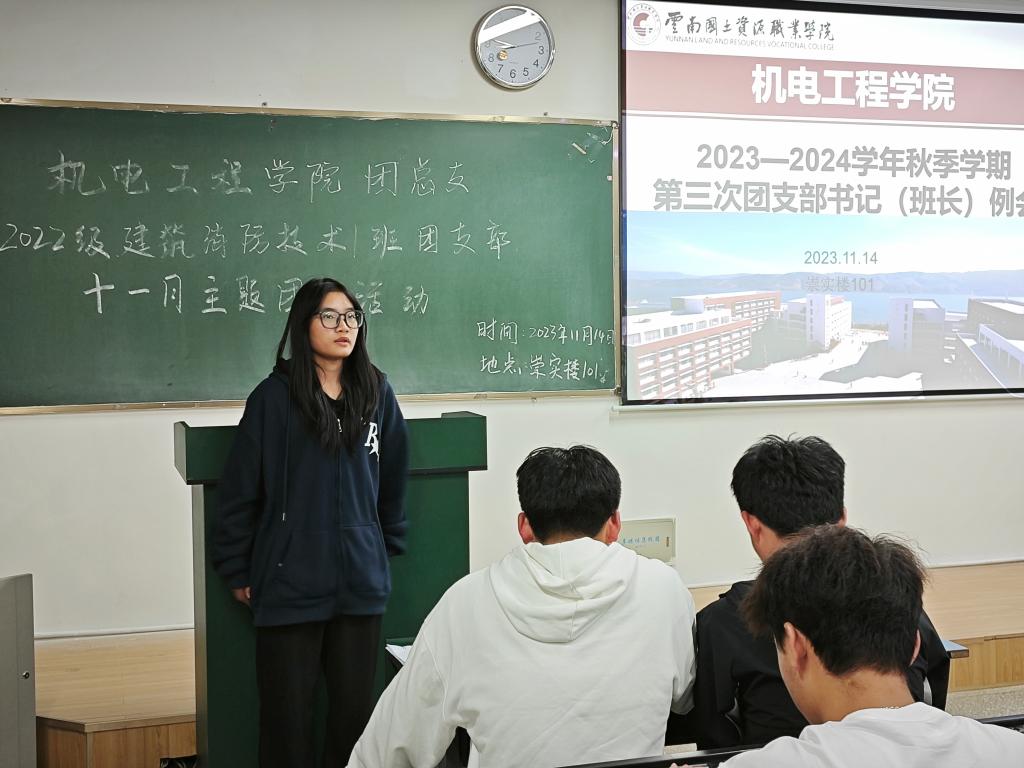 11月14日晚,世界杯体育官方网站团总支在崇实楼101开展了2023年秋季学期第三次团支部书记(班长)例会。本次例会由学院团总支副书记蒋知言主持,2022级和2023级各班团支部书记和团支部副书记共同参与。