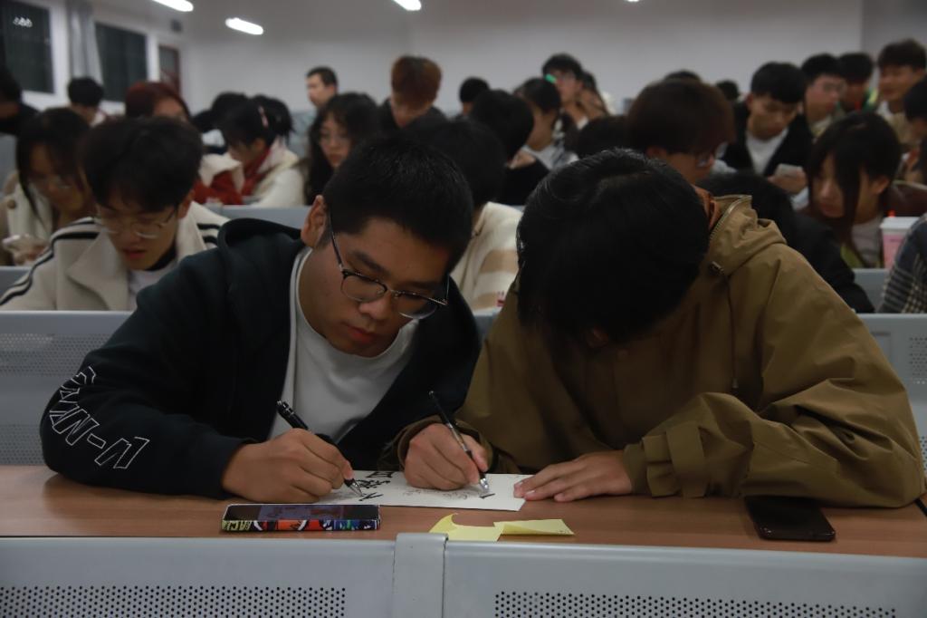 此外,活动中还设置了丰富多样的小游戏,到场同学在轻松愉悦的氛围中释放了压力,增强了团队合作精神。同学们踊跃参与,教室里回荡着欢声笑语。其中,在心灵绘画环节,同学们用画笔尽情表达对心理健康的理解或内心情绪的展示。一幅幅精美的画报,既展现了同学们的才华与创意,又传递出积极向上的心理健康理念。