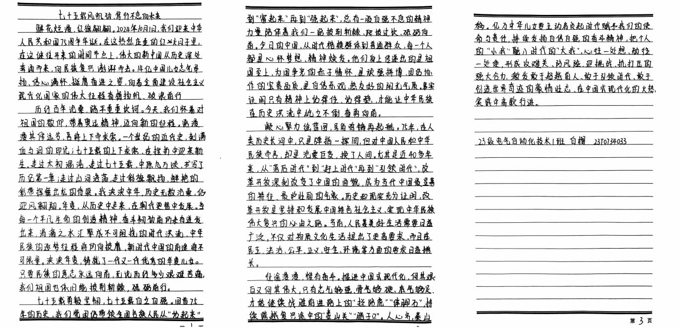 这些作品涵盖了丰富多样的内容,有的同学以细腻的笔触深情讲述了革命先辈们在艰难岁月中的英勇事迹,字里行间流露出对他们的无限敬仰之情;有的同学充分结合自身成长经历,通过第一视角叙事了红色基因对自己学习和生活中所产生的深远影响,展现了红色精神的代代相传;还有的同学以其独特视角展现了祖国在新时代波澜壮阔的伟大变革,通过具体案例剖析,坚定了实现中国式现代化的信心与决心。