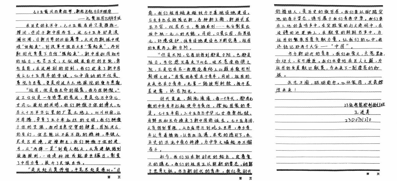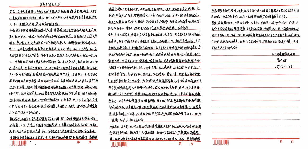世界杯官网学子积极参与,用真挚语言,庆祝祖国母亲生日,展望中华民族伟大复兴的美好未来。本次征文比赛佳作频出,以下为部分优秀参赛作品: