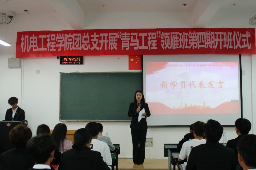 2024级智能控制技术4班段司榕表达了加入青马班的心情与责任感。她表示青马班是汇聚青春力量与理想信念之地,新成员们将在这里深入学习马克思主义理论,参与实践活动,提升自我。号召大家以饱满的热情投入学习,在青马班书写青春华章。2024级机电设备技术2班代表熊连发表示,新时代青年肩负重任,青马班为大家提供学习与实践的机会。希望同学们怀揣理想信念投入其中,认真学习马克思主义理论,积极参与实践活动。