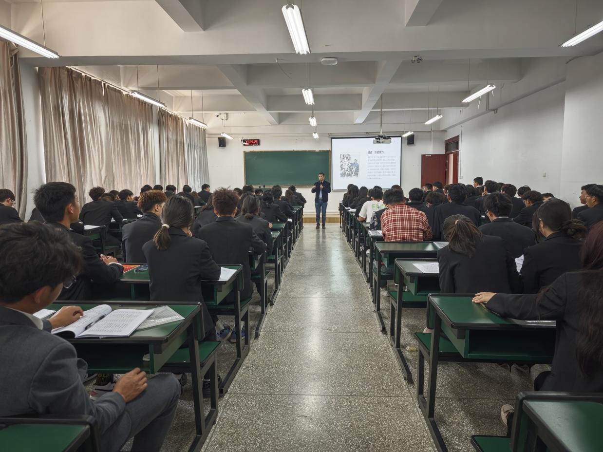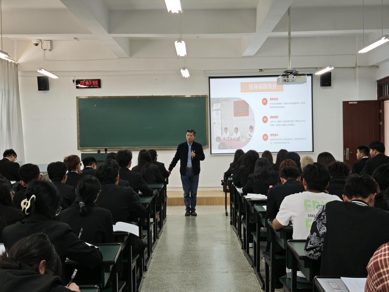 周老师以“人之青春恰似朝阳,青年人才乃未来祖国之中流砥柱”为引,切入主题。他谈到,习近平总书记的青春,是扎根黄土地、一心为民的青春。习近平总书记在梁家河的知青岁月中,与乡亲们并肩作战,一同打井、打坝、修梯田。尽管条件艰苦,他却毫无怨言,一心只为改善百姓生活。这份担当与奉献,正是青春该有的模样。“一代人肩负一代人的使命,一代人展现一代人的担当。”周老师着重强调,身处伟大时代的我们,应当从习近平总书记的青春历程中汲取奋进力量。青马班学员作为青年骨干,更要坚定理想信念,站稳人民立场,努力练就过硬本领。在校园里,积极投身志愿服务,珍惜时代机遇,不负青春时光,用青春汗水书写当代青年的奋斗篇章 。