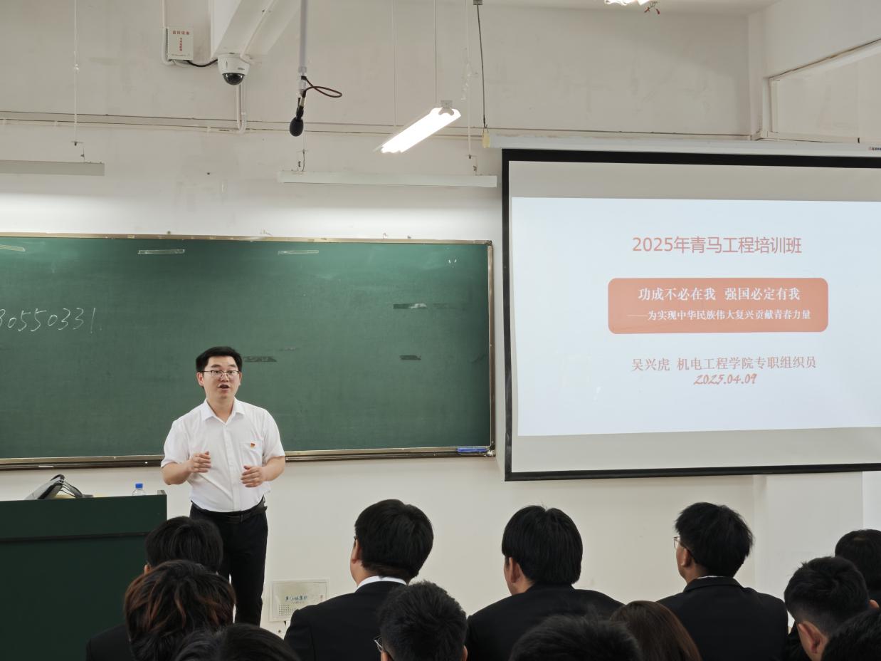 4月9日下午,机电工程团总支“青马工程”领雁班第四期第十三讲于崇实楼602精彩开讲。此次,学院十分荣幸地邀请到专职组的吴兴虎老师,为同学们带来一场以 “功成不必在我,强国必定有我”为主题的深刻授课。