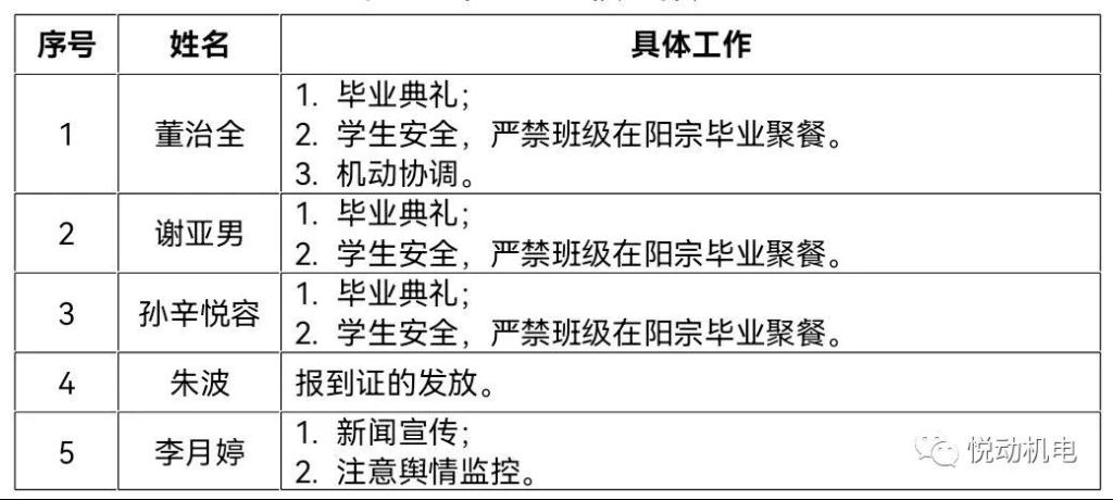 为了保障毕业生返校工作的顺利进行,特对涉及毕业生工作的相关教师做如下分工: