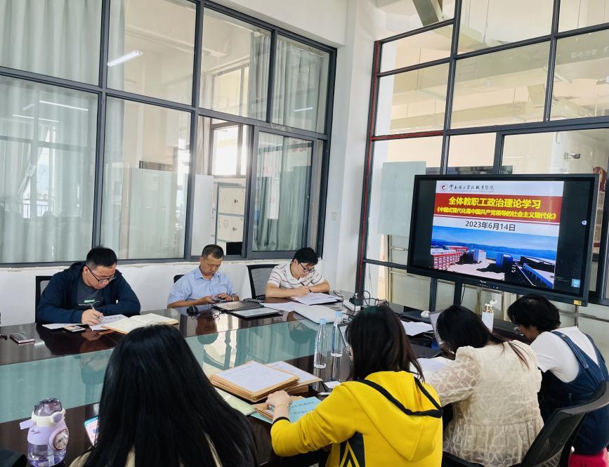 为深入学习贯彻党的二十大精神,抓好主题教育,凝聚奋进力量,6月14日中午13:00,世界杯体育官方网站在明尚楼A201开展了2023年6月份第二次教职工政治理论学习会。本次政治理论学习会由学院党总支书记王春莲带领全院教职工学习了6月1日出版的第11期《求是》杂志发表的习近平总书记重要文章《中国式现代化是中国共产党领导的社会主义现代化》。