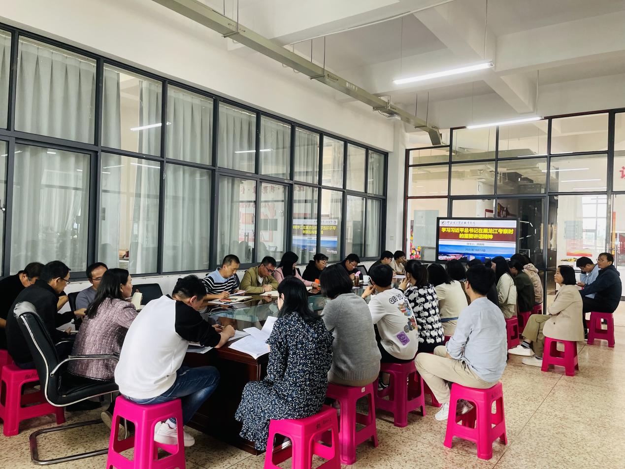 副院长熊国栋带领全体教职工大致回顾了习近平总书记在黑龙江考察时的行程,重点学习了习近平总书记在哈尔滨工业大学的讲话精神。他将习近平总书记重要讲话精神同学院现有专业特色、云南省“3815”战略发展目标结合,指出国家对科技创新、制造业升级的重视,为我们学院各专业学生提供了更大更宽阔的舞台和发展机会。我们作为一线教师要紧跟国家发展潮流,努力提升教书育人能力,以课堂主阵地和技能竞赛、校企合作重要阵地,引导学院全体学生树牢科技报国志,刻苦学习钻研,在推进强国建设、民族复兴伟业中绽放青春光彩。