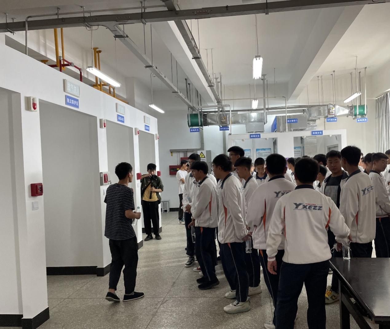接着,学院实训室管理员王强卫带领全体师生依次参观了安全检测与监测实训室、单片机综合实训室、电工综合实训室、PLC实训室、汽车电子实训室等,向同学们介绍了感烟感温探测器、火灾报警系统、汽车发动机和变速器等实训设备。