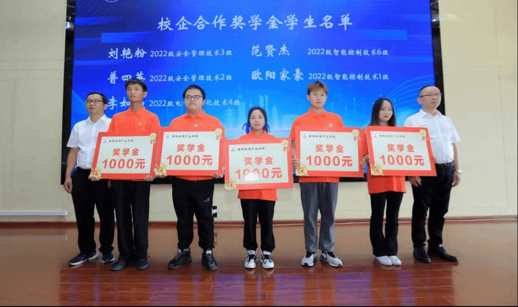 本次开学典礼上还进行了智能制造产业学院现代学徒制班的揭牌、客座教授聘书的颁发、学生代表班徽的授予、学徒制家庭专访的播放、校企合作奖学金的颁发。