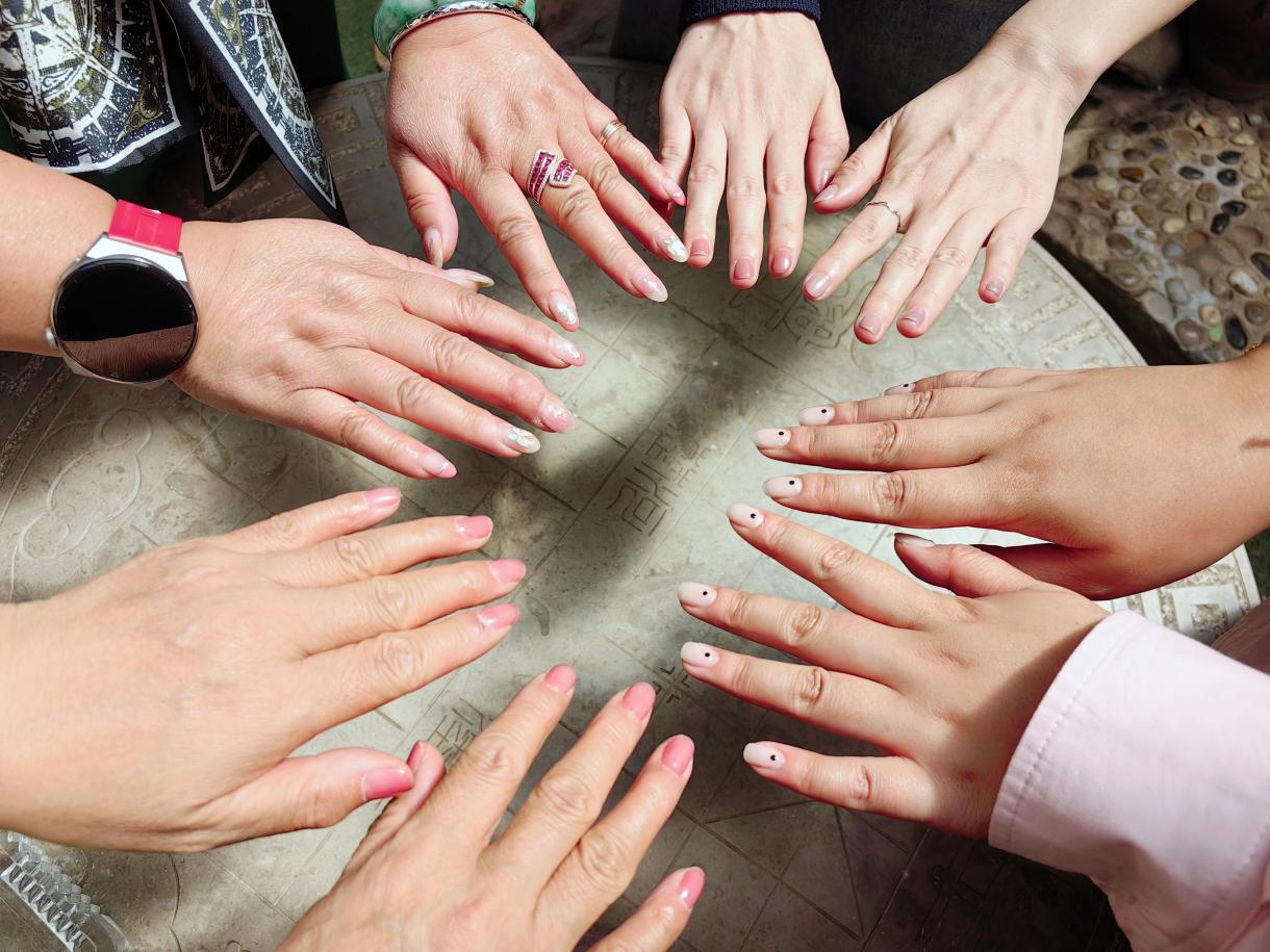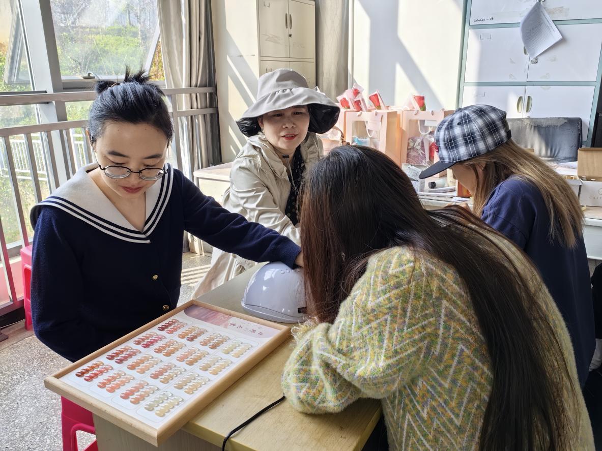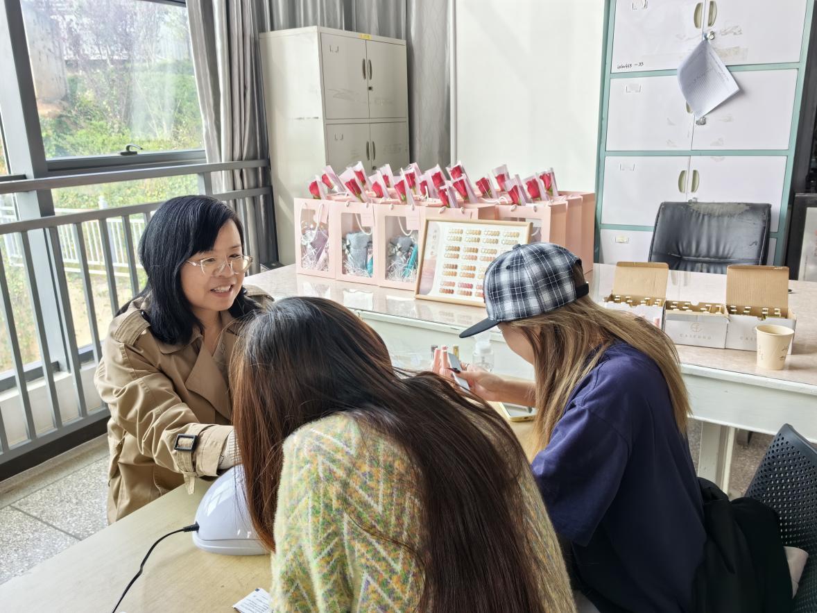 来自校团委的同学为学院女教师们做美甲。