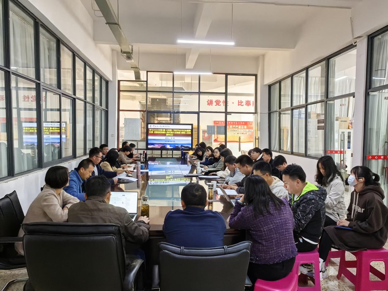 3月20日13:00,世界杯体育官方网站在明尚楼A201开展了2024年3月份第四次教职工政治理论学习会。本次政治理论学习会由学院副院长陈伟领学习近平总书记的重要文章《坚持和完善人民代表大会制度 保障人民当家作主》,全体教职工参加。