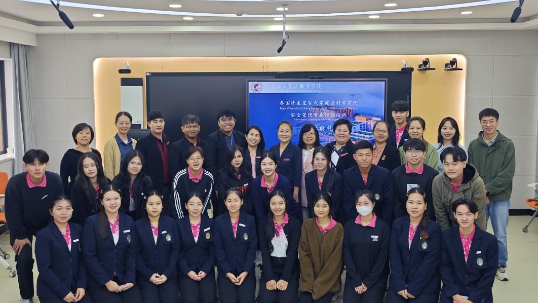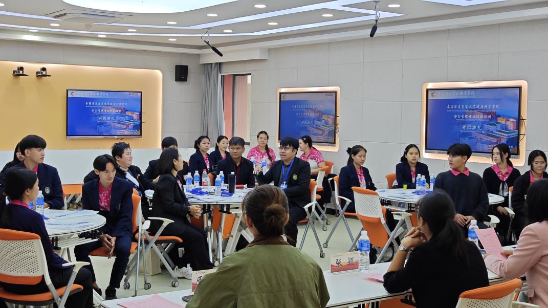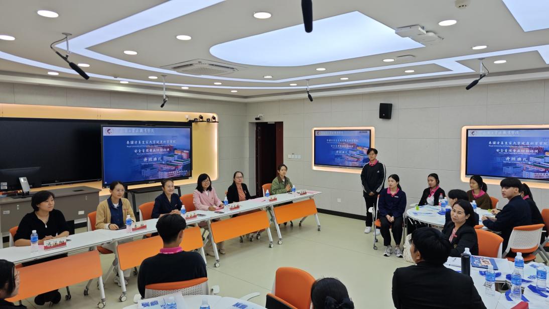 6月3日,泰国清莱皇家大学师生安全技术与管理培训班开班仪式在阳宗海校区崇实楼505智慧教室举行。泰国清莱皇家大学师生领队,25名培训学员,我校副校长张云霞,国际交流处、教务处、素质教育学院(国际学院)、世界杯体育官方网站有关负责人和师生代表参加了开班仪式。开班仪式由世界杯体育官方网站院长张俊妍主持。